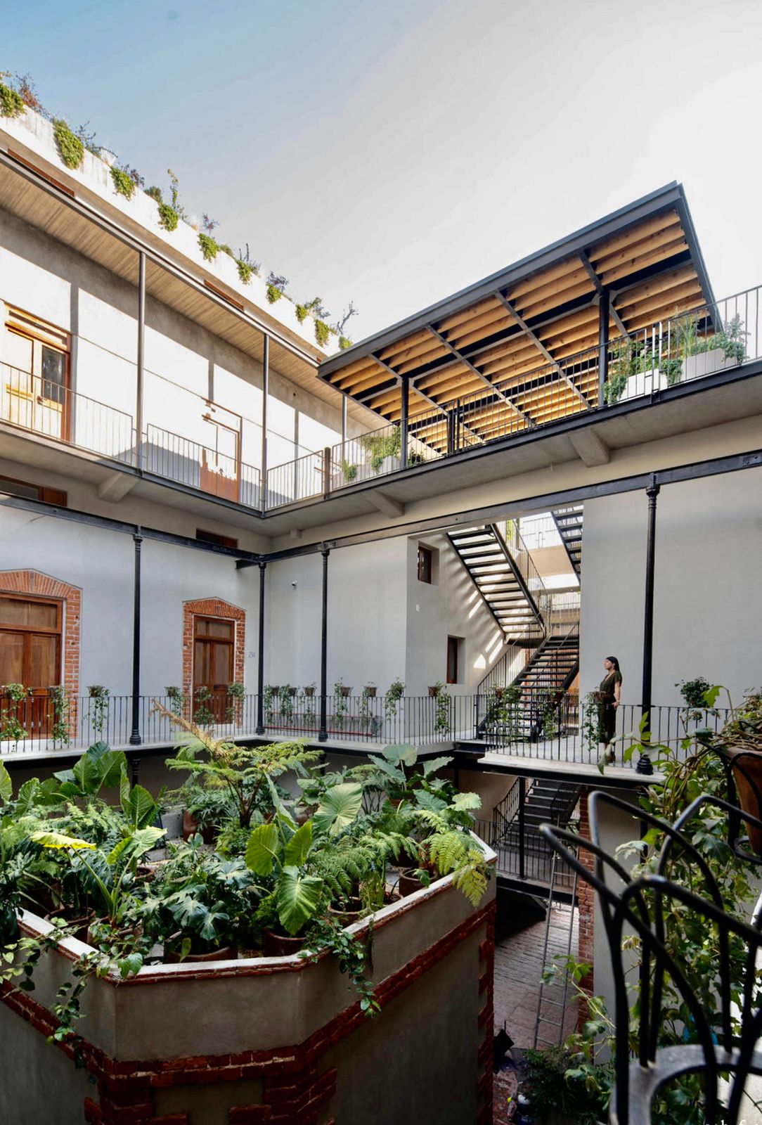 The building was originally a three-story townhouse intended for a single family. After being abandoned and amid changes in the social and cultural context, the decision was made to transform it into a mixed-use building that would integrate fluidly into the urban life of the Ciudadela district. After reorganizing the spaces and expanding the top level, it now contains 37 residential units and 9 commercial spaces, plus three patios and two shared terraces.